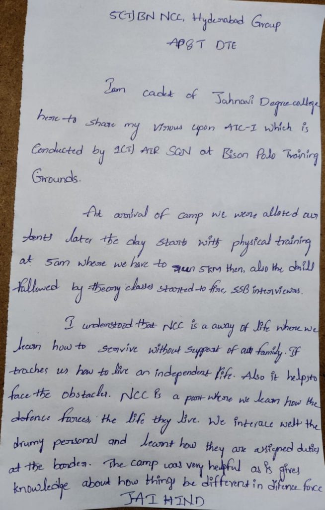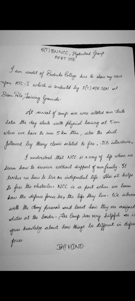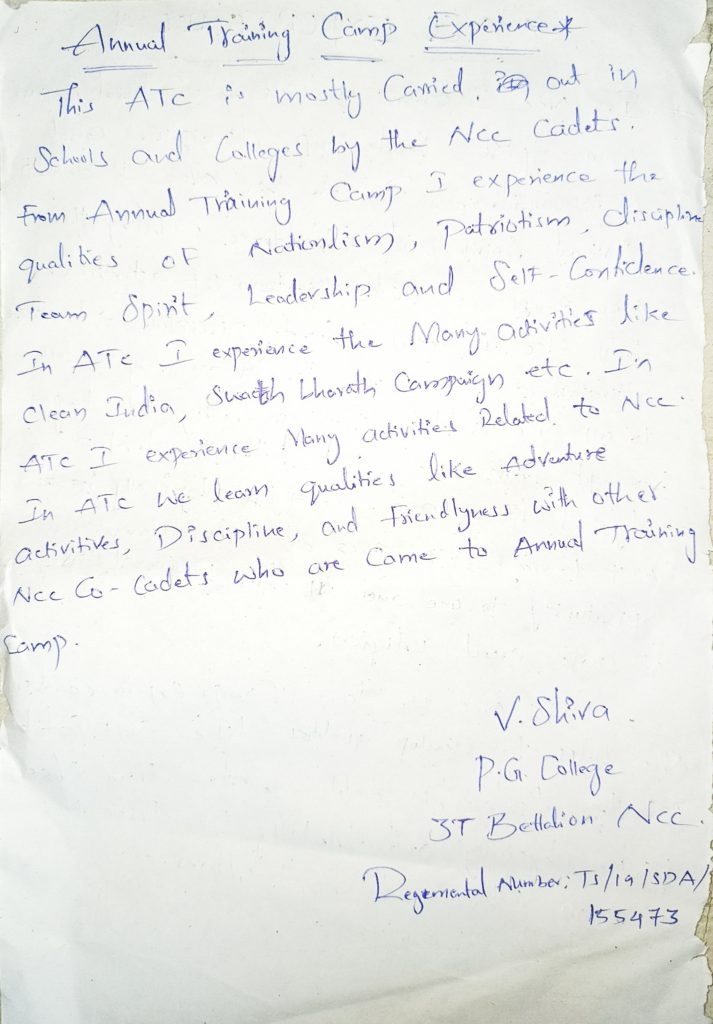 Cadet- V.Shiva Reg no - TS/19/SDA/155473 University college of science saifabad Osmaina university Hyd 3T Bettalion NCC