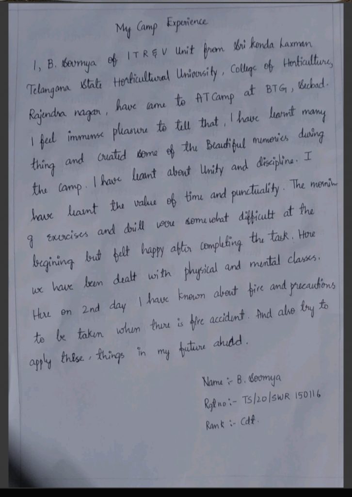 I Soumya have written about the clean india campaign which was experienced during the camp.