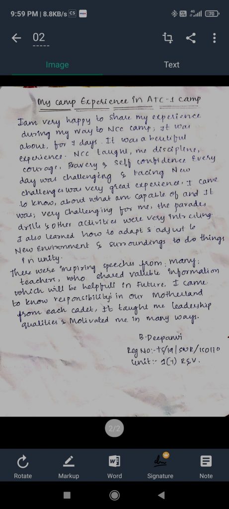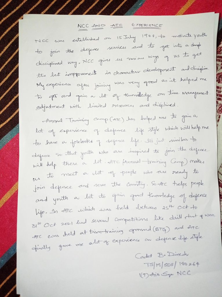 I'm Cadet Nageshwar, Reg no: TS/20/SDF/18004 of No. (1) AIR SQN, Hyderabad group. I shared my. Experience in ATC Camp and expressed my words on Clean India Campaign.