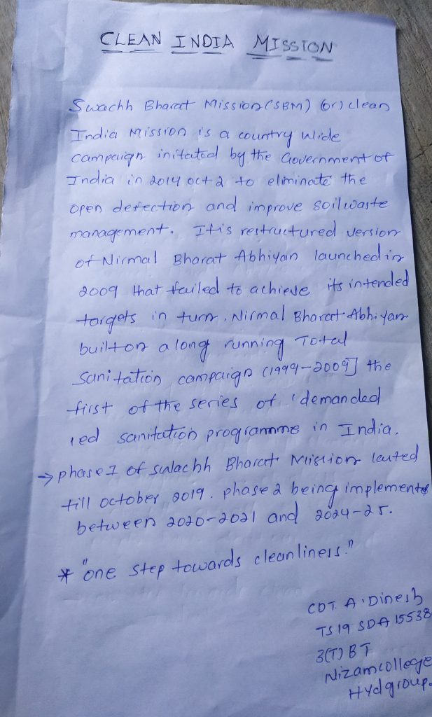 Clean INDIA' 3T Betalion Hyd group Nizam college