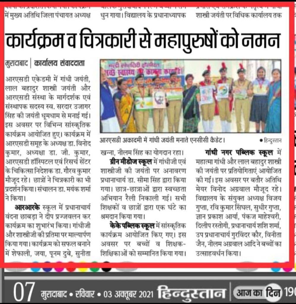Gandhi jayanti celebration by ncc cadet in RSD academy