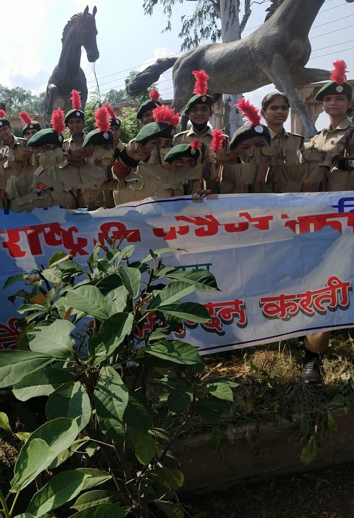 2 October Gandhi jayanti pr 7 raj girls bn ncc kota ne podha ropan and clean India ka program rkha