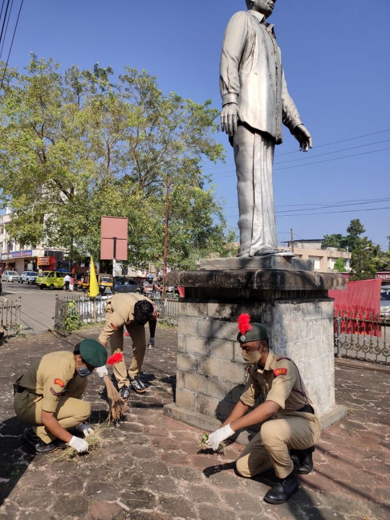 P.Kesavan Square at Kozhencherry was cleaned by NCC cadets.