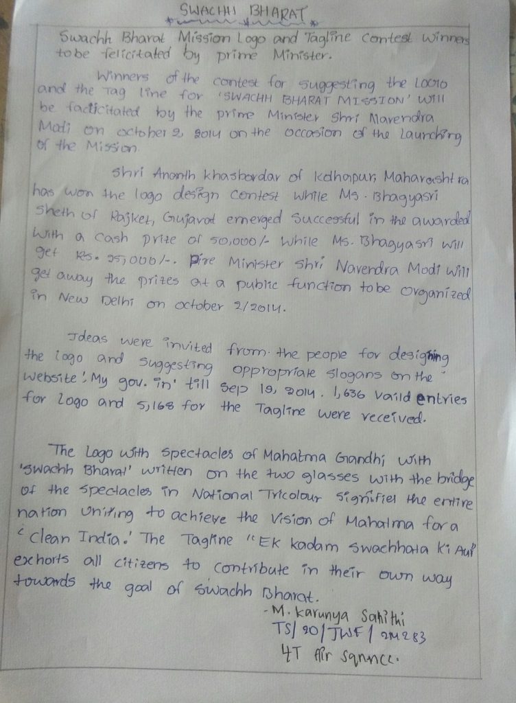 M. Karunya Sahithi TS/20/TWF/214283 4T Air sqn ncc