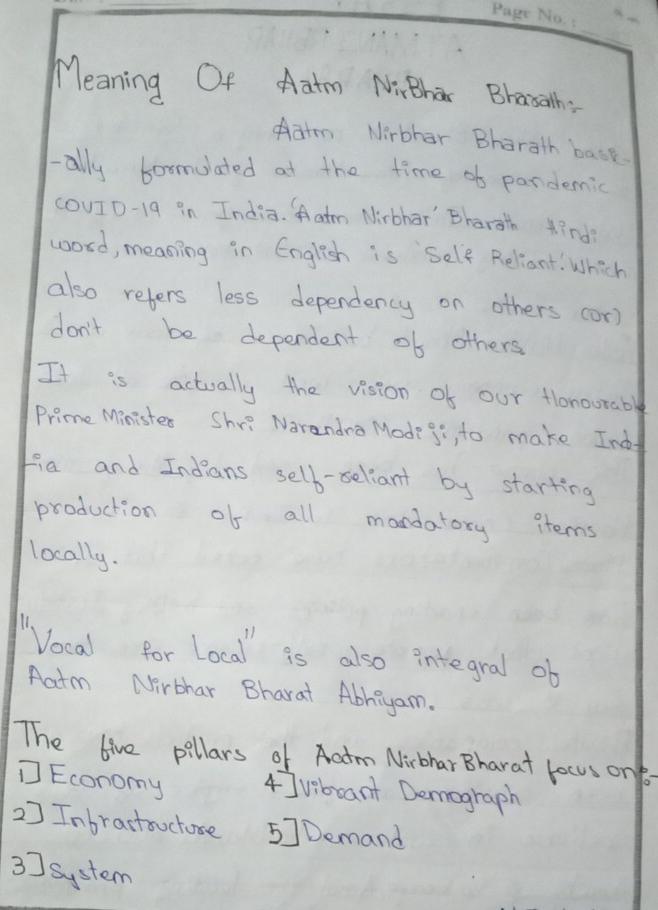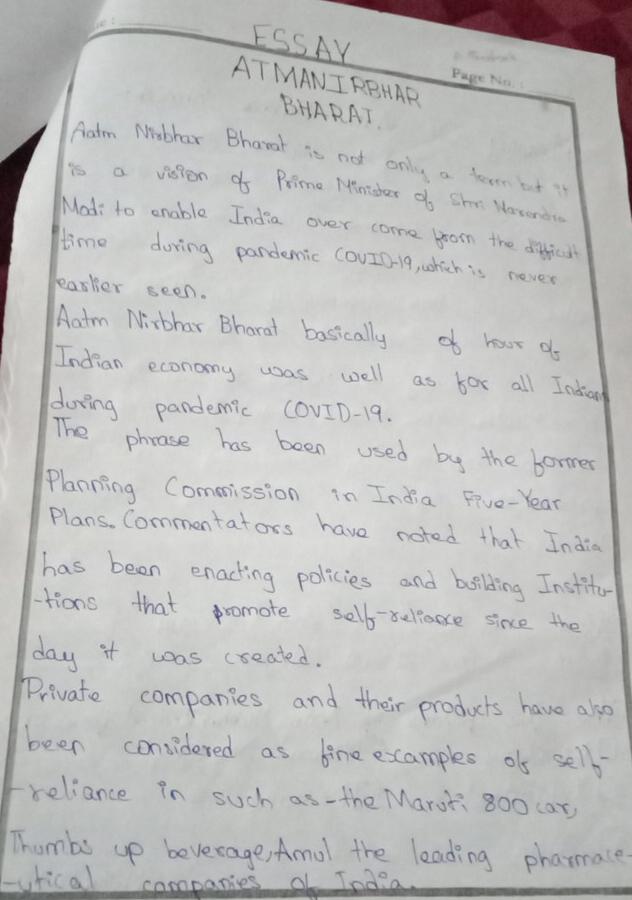 Essay:-Aatm Nirbhar Bharath