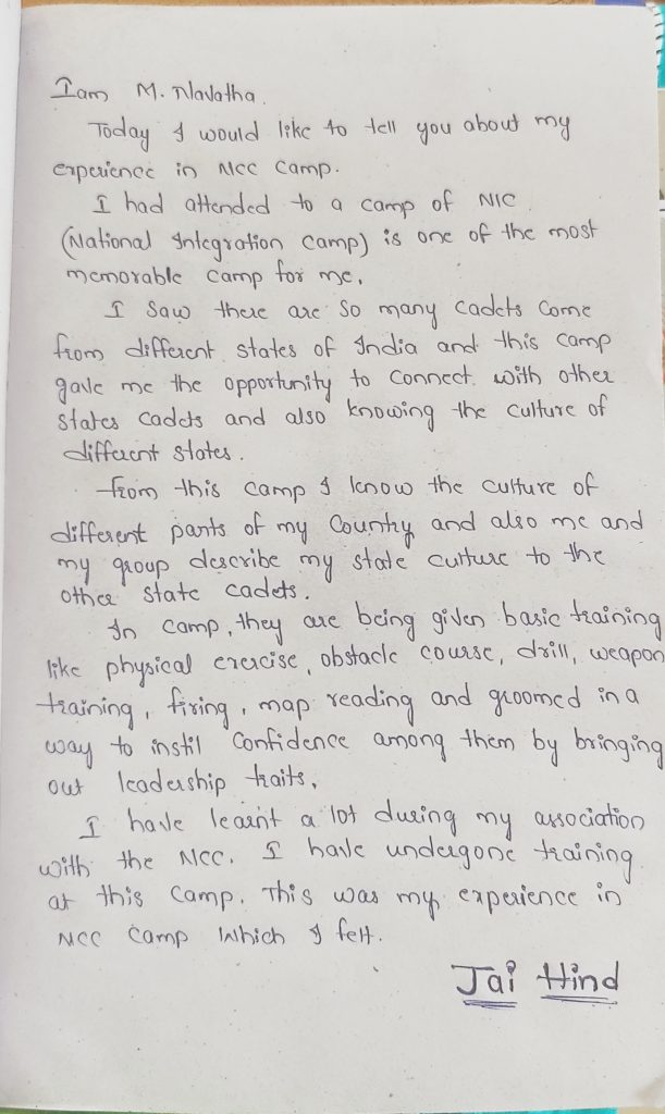 I shared my experience on my ncc camp ...iam proud to be an NCC cadet ..jai hind ✊