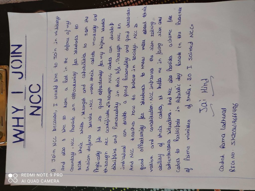 Name Kajal badyal regimental number JK 20SWA665606...2nd girls bn ncc jammu