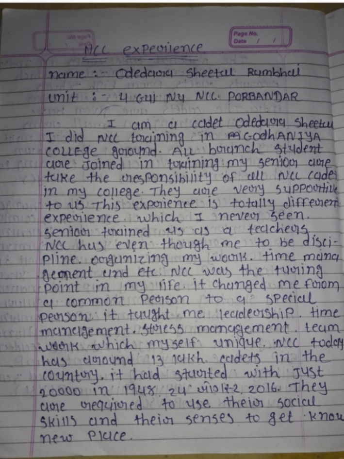 UNIT- 8 GUJ NAVAL UNIT NCC JAMNAGAR COLLEGE- GOVERNMENT COMMERCE COLLEGE JAMNAGAR NAME- PO CDT GURNANEE RAVINA REGIMENT NO- GJ20SDN540601