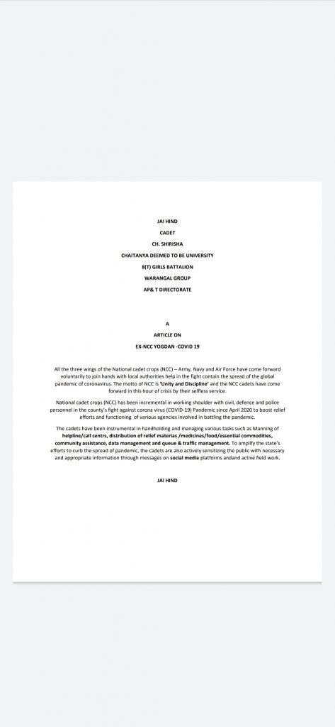My self cadet Ch.Megana and i have written an article on Ex NCC YOGDAN