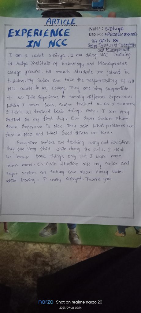 I am Cdt Raj malviya college Samrat Ashok technologycal institute vidisha 14 MP Battallon NCC vidisha, Bhopal gruop, MP&CG Directorate