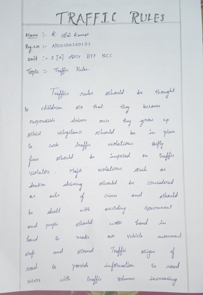 I cadet Vijay Kumar my topic is my NCC journey . NCC will help in our life in so many ways . We will get physical fitness .NCC is same defence NCC c certificate is a very useful in our life .