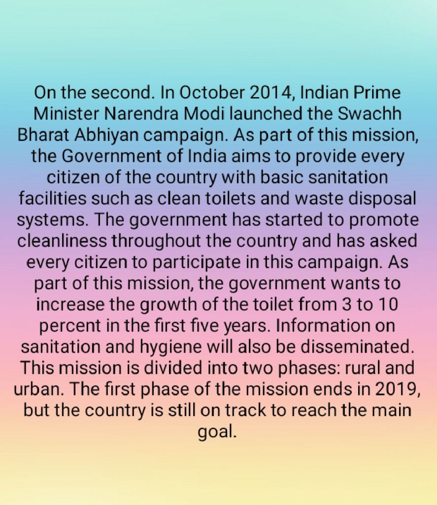 "A clean India would be the best tribute India could pay to Mahara Gandhi on his 150 birth anniversary in 2019" said Shri Narendra Modi