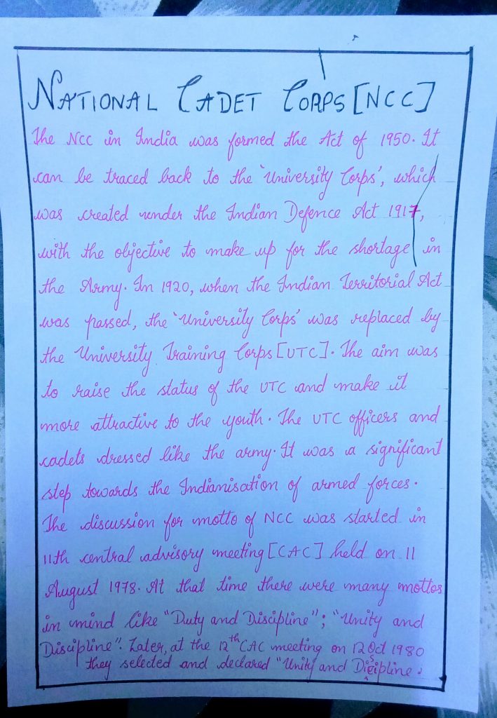 About NATIONAL CADET CORPS (NCC)