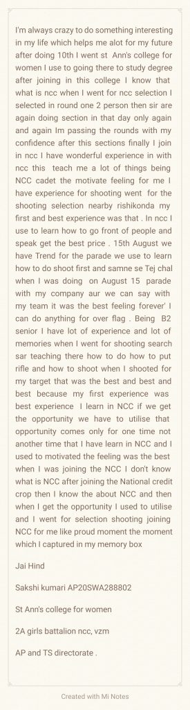I am cadet Gnana Shreeya. I am a second year NCC cadet