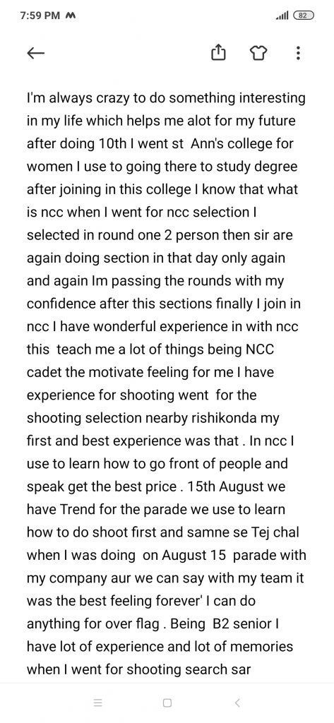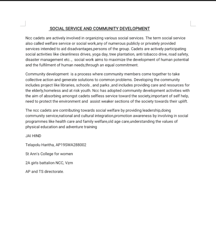 I am ncc cadet of 2(A)girls battalion vzm,and I am very much excited to writing article about social service and community development