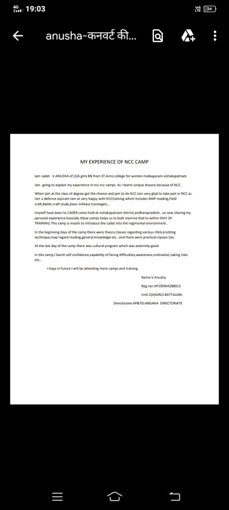 Cadet:M.Manogna Reg No:AP20/SWA/521696 MITS-NCC 35(A) Battalion, Chittoor