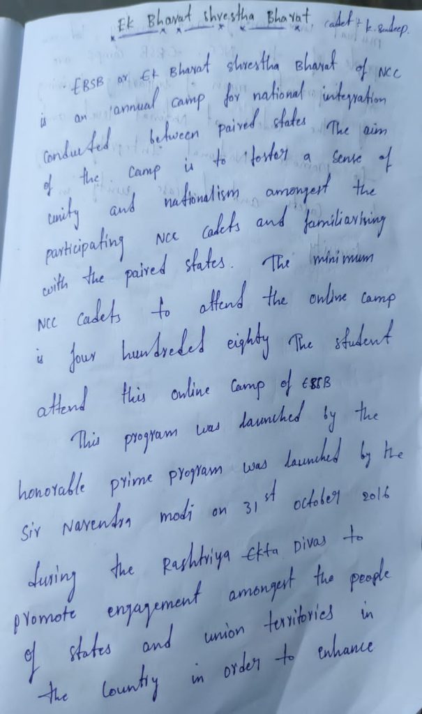 Cdt Shek Pharveen presenting an essay on Ajadi ka Mahotsav