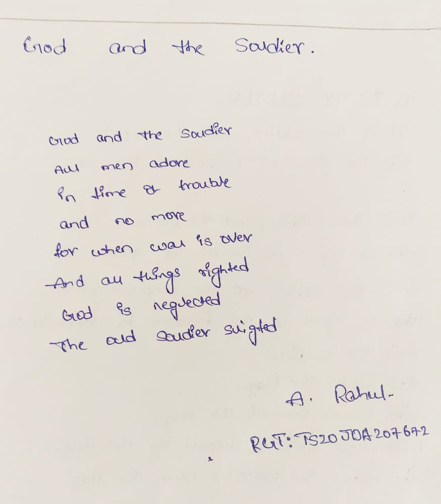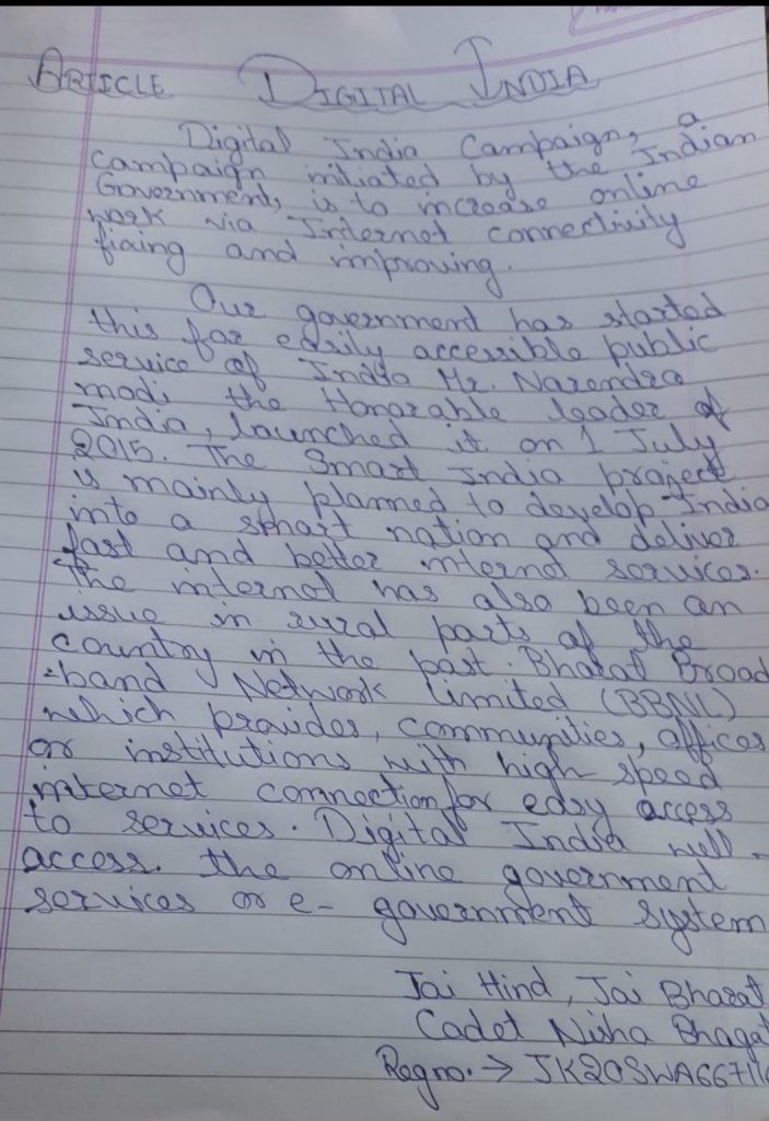 Jay Hind this is cadet SK. nowshah AP19SWA530706 5A girls BN Tirupati .Dkw Government degree College ,Nellore