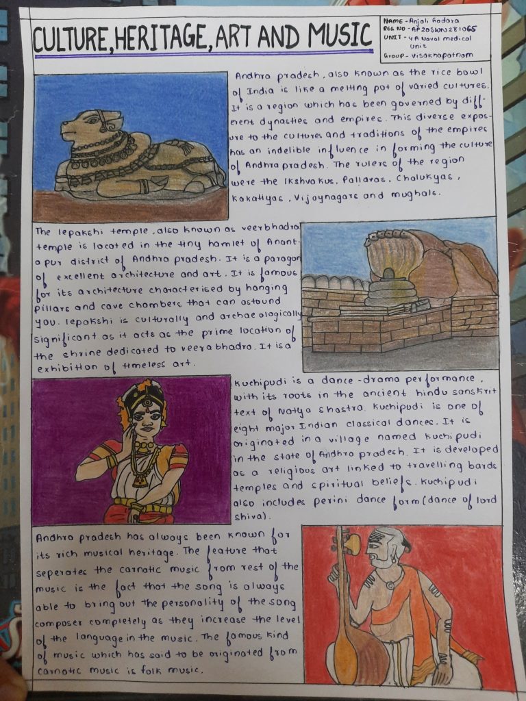 This article is on the topic of culture, heritage , art and music of Andhra pradesh... By:- Name - Cadet Anjali godara Unit - 4 andhra naval medical unit Group -visakhapatnam Dte - Ap and T