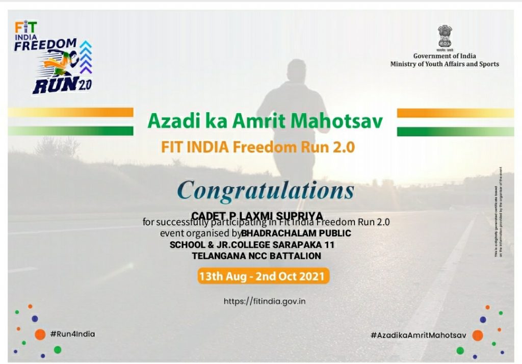 Unit:11 Telangana Bn Group HQ:warangal Directorate:Ap & Telangana Fit India freedom run Catch the rain pledge taken by ncc