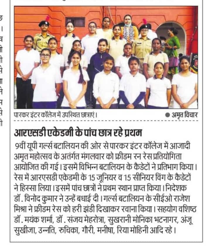 Manisha ojha 9Up Girls Bn NCC Cadet from R.S.D Academy Moradabad.