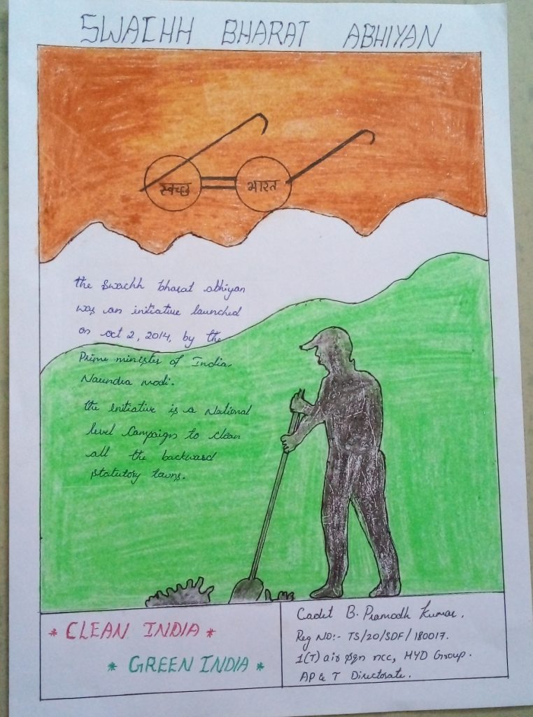 Cadet Pramodh kumar 1(T)air sqn ncc Hyd Group Ap & T directorate Swachh bharat abhiyan