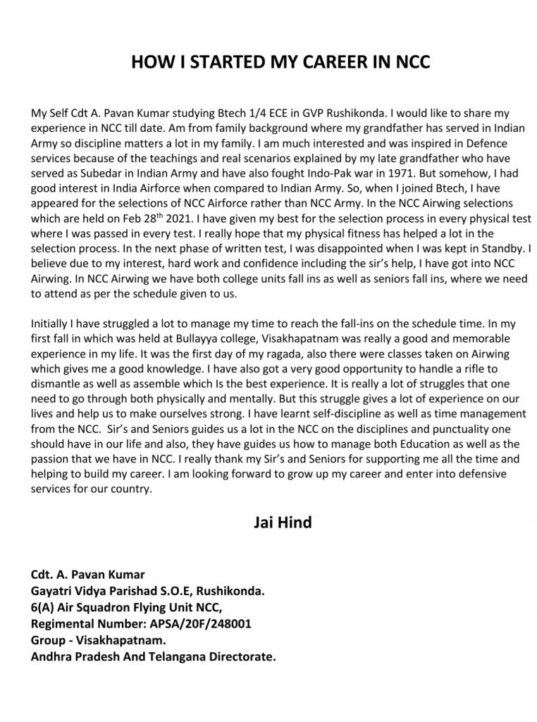 Cdt. Lakshmana reddy Reg no:APSA/20/F/284014