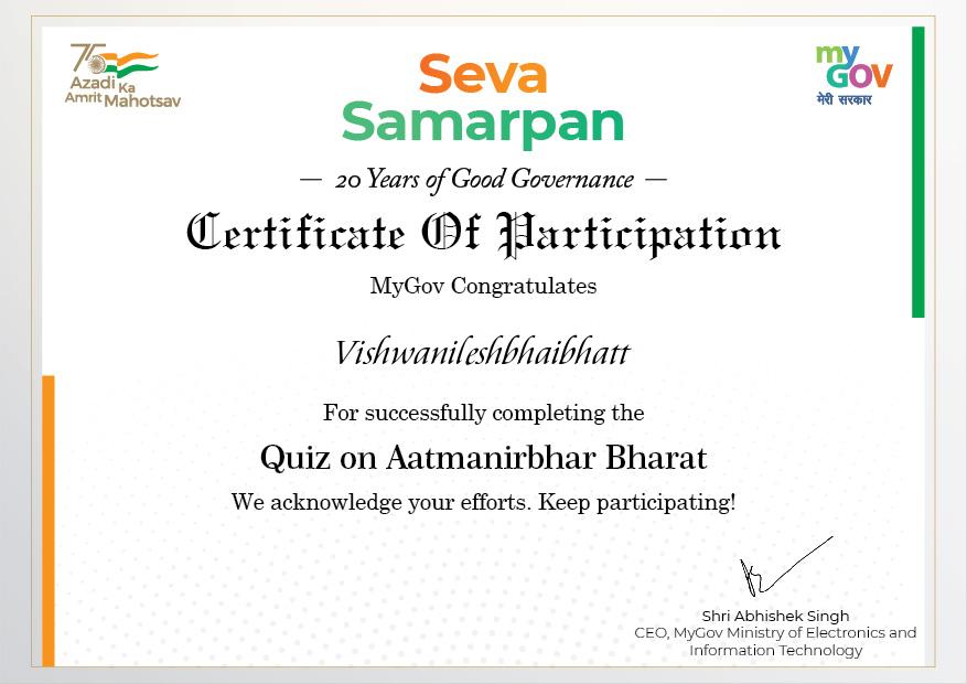 As a part of ncc programme.Participated in Aatmanirbhar Bharat.