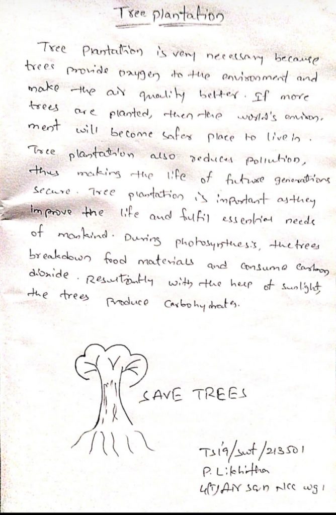 This topic is abut tree plantation P.likhitha 4(T)AIR SQN NCC WARANGAL GROUP AP and T directorate
