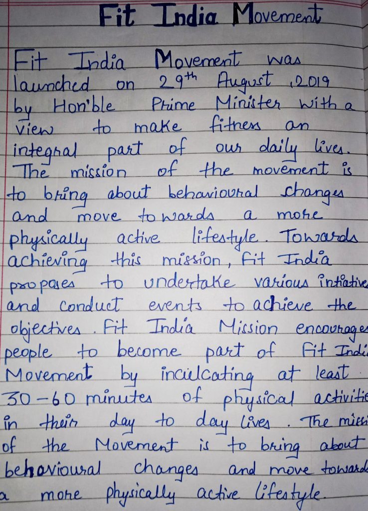 Leading cadet PRANJAL SHARMA from 1 MP NAVAL UNIT I wrote a article on fit India. Jai hind??✨