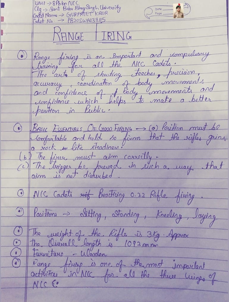BY TRAINING OF THIS CAMP I GET TO KNOW ABOUT WEAPON HANDLING , SHOOTING AND CLEANING PF THEM ETC..