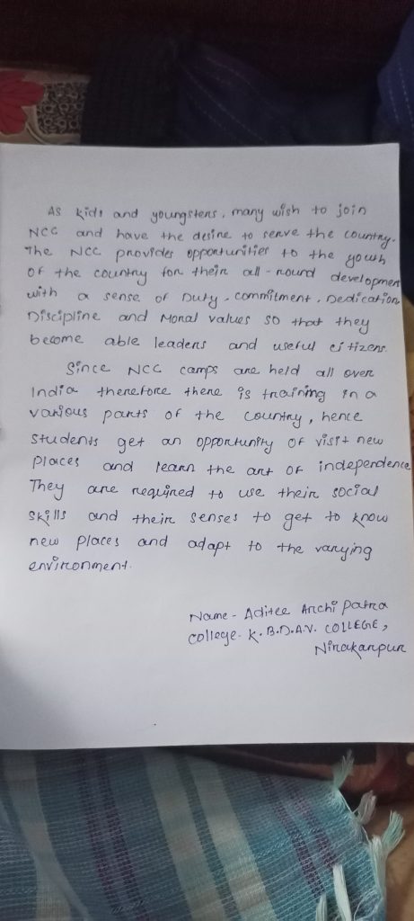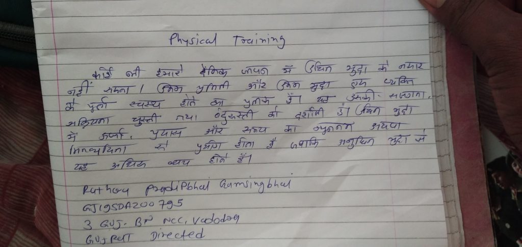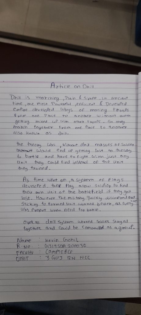 Name: Tanmay Dave Regiment: GJ20SDA20124 CADET OF 3 GUJ BATTALION