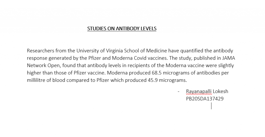 Study on Antibody Levels