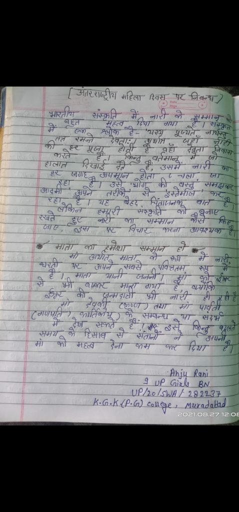 Cadet Anju Rani, UP/20/SWA/282237, K.G.K[P.G] COLLEGE MORADABAD