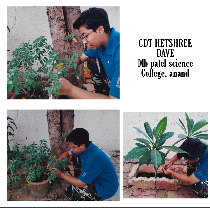I am Cadet Helly Vyas from 1 Gujarat Naval Unit NCC Group Head Quarter Ahmedabad Directorate (Gujarat, Daman & Diu) - College C U Shah Institute of Science, Tree Plantation by Cadets Off 1 Gujarat Naval Unit NCC at Chandanpura Village, Kadi, Mahesana