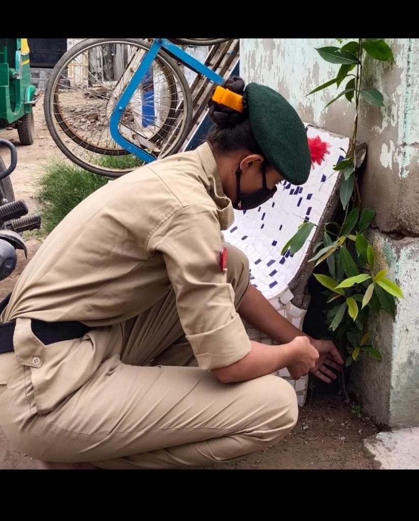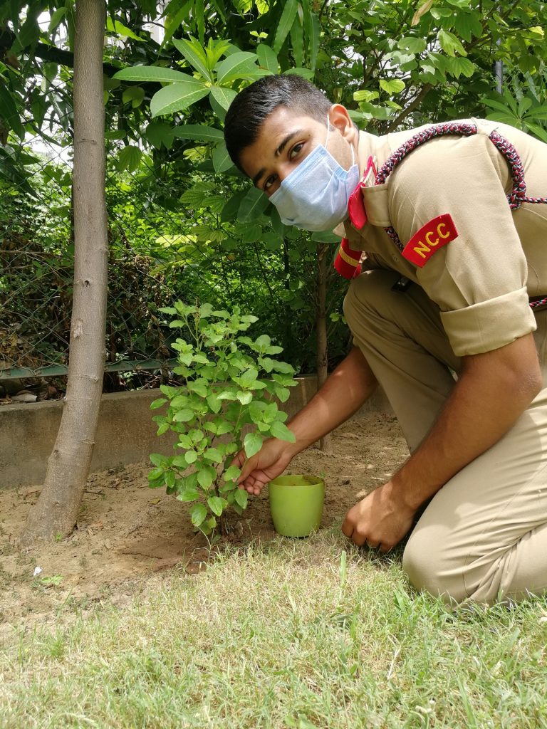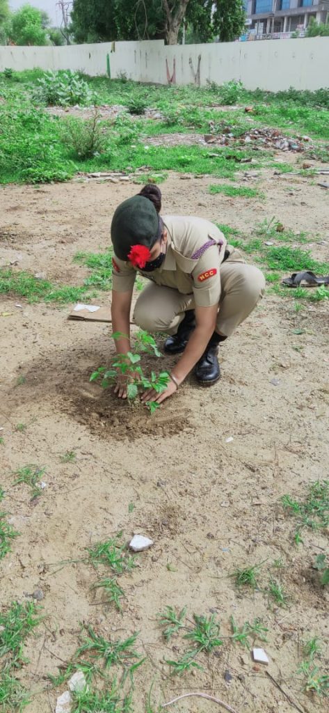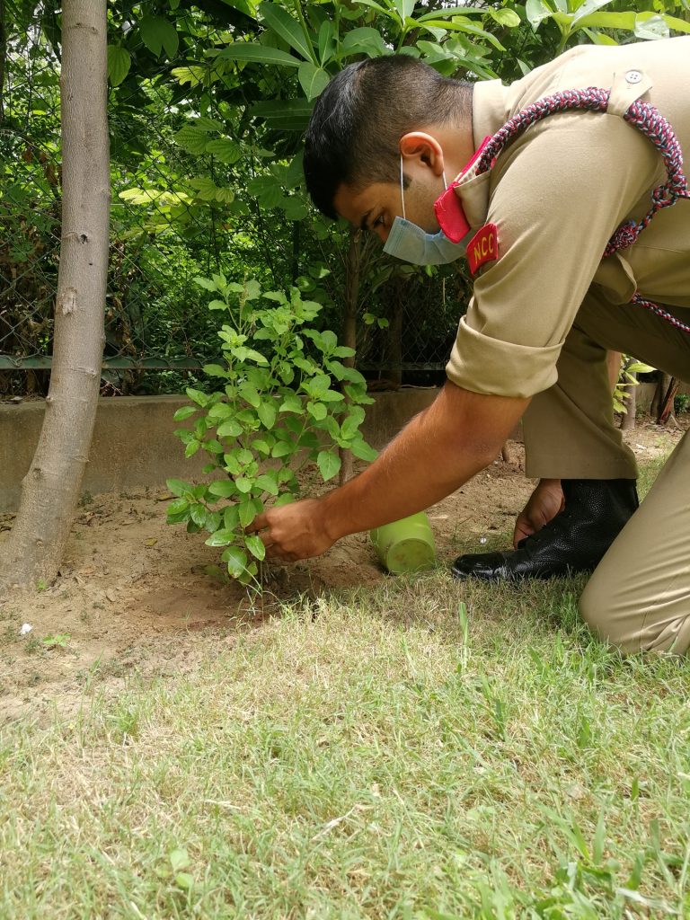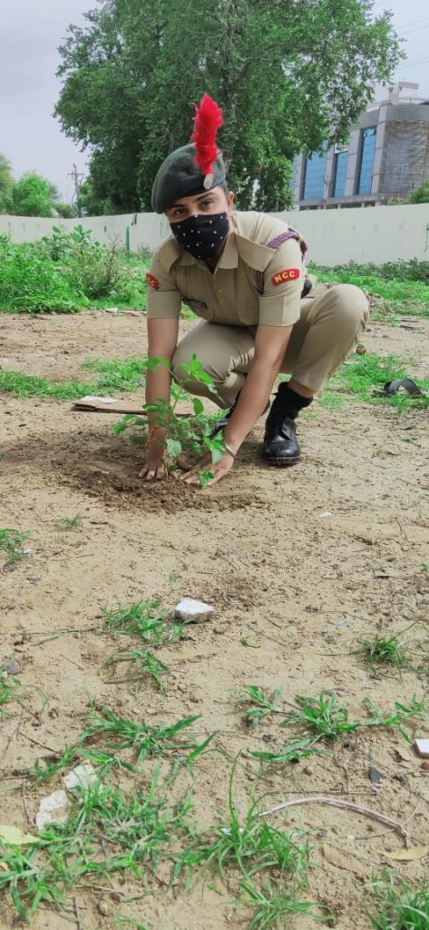 I am cadet Jyoti From Gujarat Art\'s and commerce College Ellis bridge, Ahmedabad; Gujarat, Unit:Guj Bn Ncc(1), Dt:Guj;DD;DNH Date : 21/07/2021 Sapling:Neem Plant