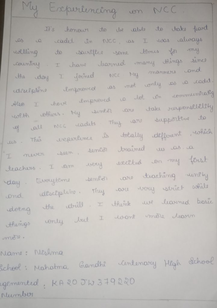 JAI HIND, I am Cadet Jagruthi M.C of Kar Bn Ncc (19) , Jnanaganga Residential School. Be human and stop violence .