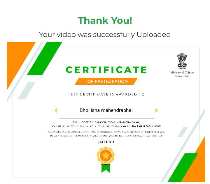 Name:-CDT Bhoi isha m Reg no:-GJ19SWA102527 1 GUJARAT GIRLS BN, NCC AHMEDABAD, GUJARAT. Sub:-azadi ka amrit mahotsav