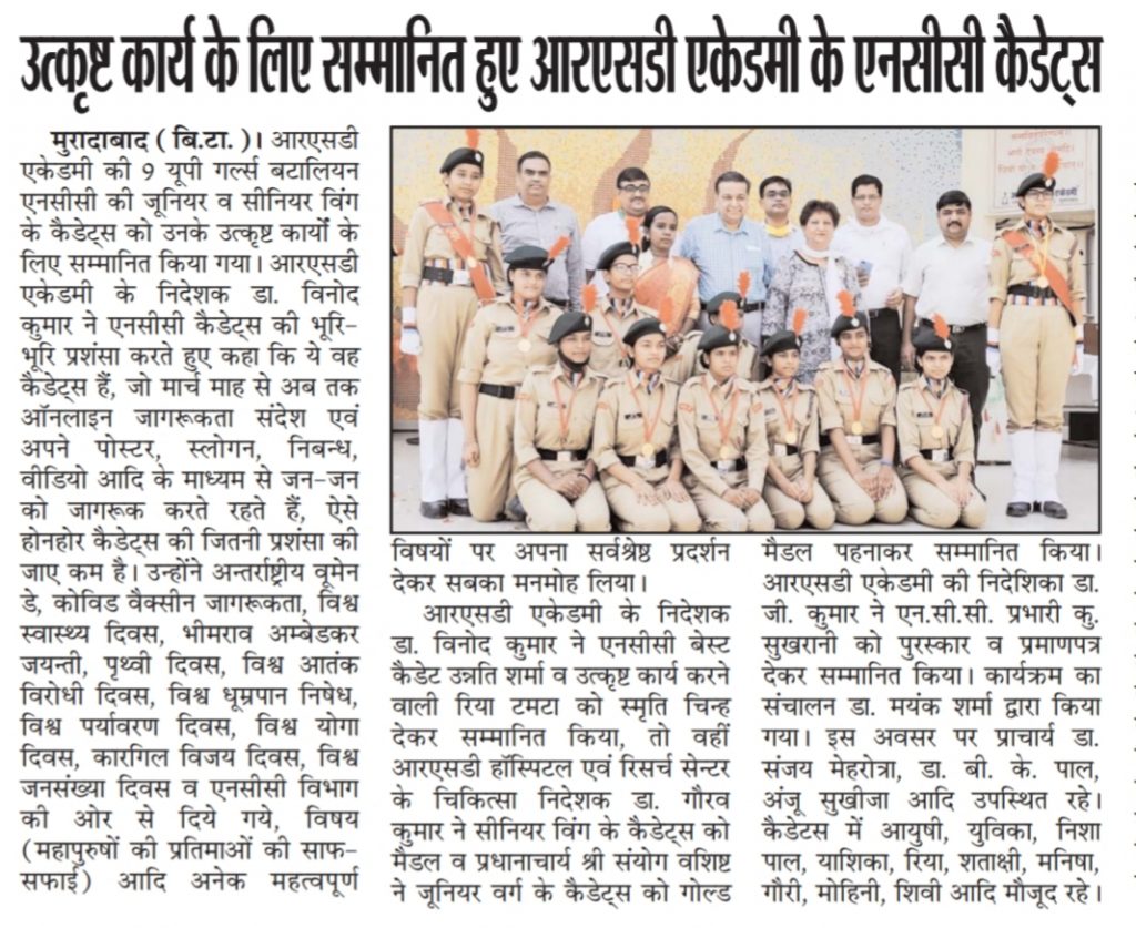 RSD academy moradabad NCC cadets 15.8.21 ko college me sammanit