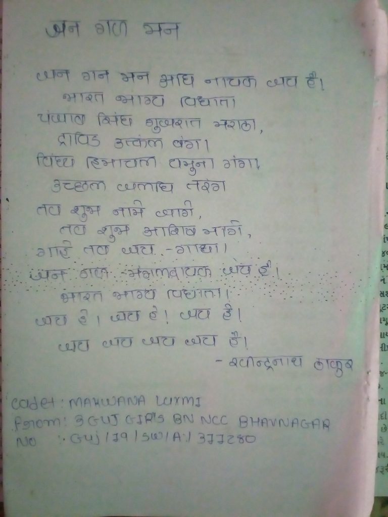 I am cadet makwana laxmi from 3 Gujarat girl's BN ncc Bhavnagar. National anthem