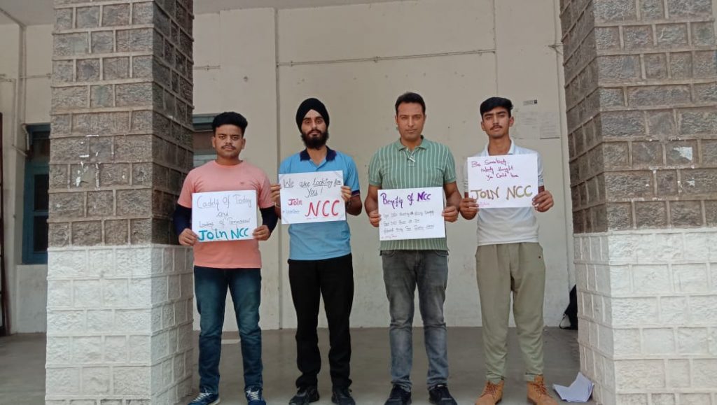 A unity drive was held up by cadets of 5 j&k bn NCC Poonch, to encourage the students to join ncc and were awared of the benefits and characteristics of NCC. The entire drive was maintained by ANO NCC GDC Poonch, teaching staff and Ncc Unit