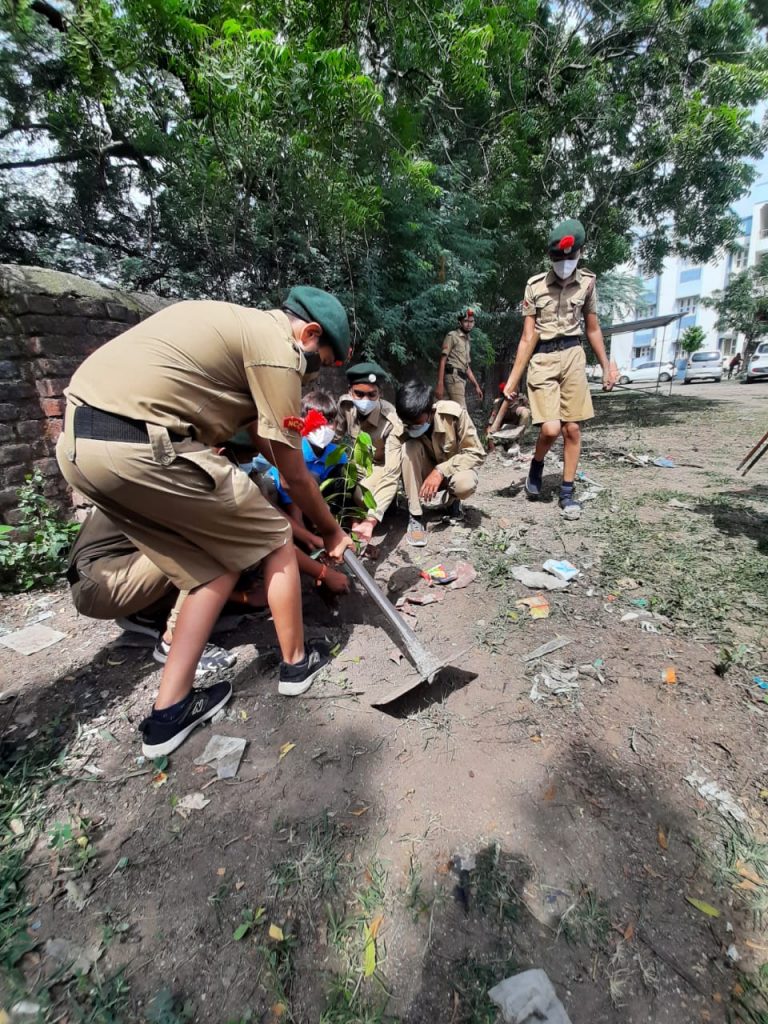 tree plantetion at dhrol police station by shree b. m. patel school.