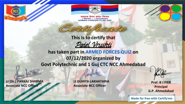 GH19SWA102824 SGT. HEMANGINI PRAJAPATI FROM 1 GUJ GIRLS BATTALION OF GUJARAT DIRECTORAT IS PRESENTING # EK MAI SAU KE LIYE # THANKS TO DOCTOR