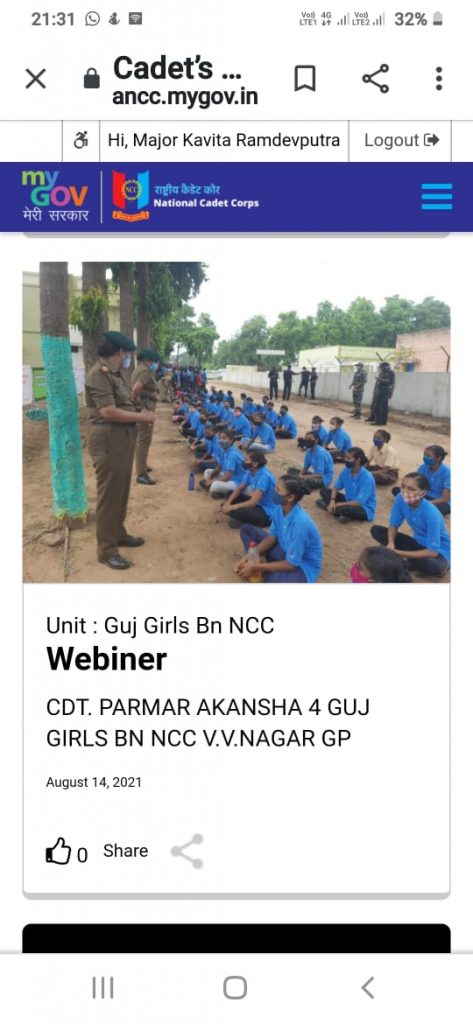 I'm cadet Gohil khushali from 3 guj girls bn ncc Bhavnagar.