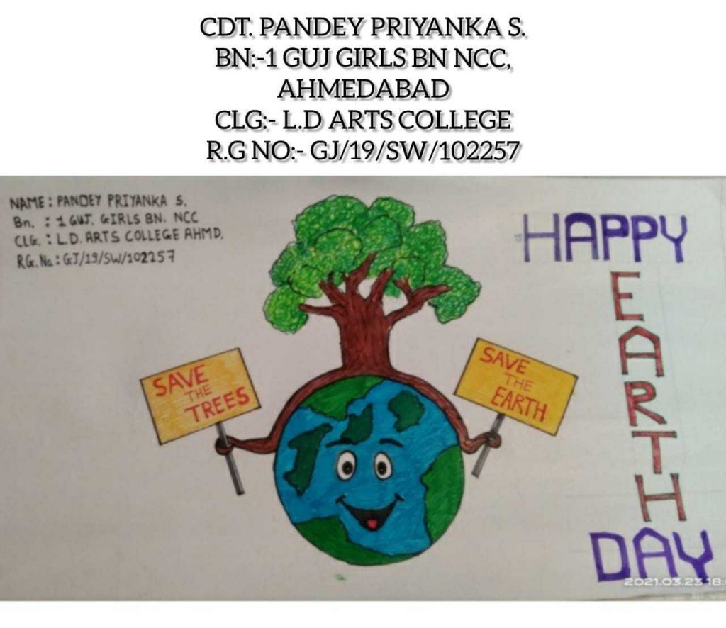 Poster Making on World Earth Day By cdt.Pandey Priyanka 1 Guj. Girls bn.,HQ Ahmedabad
