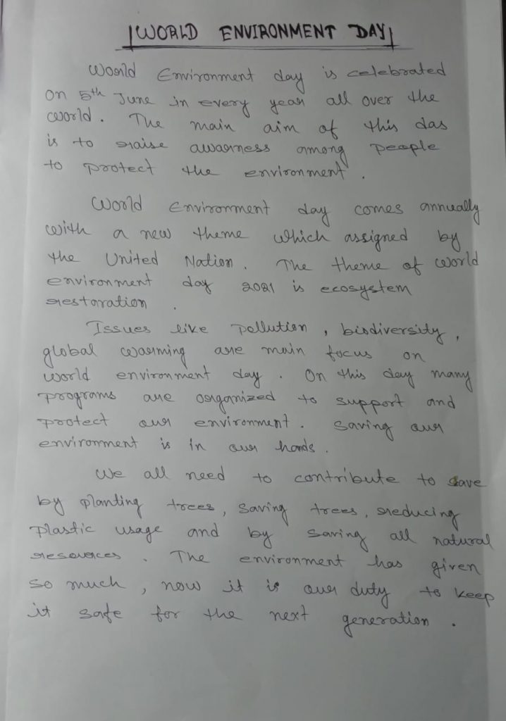 World Environment Day (WED) is celebrated annually on 5 June and is the United Nations' principal vehicle for encouraging awareness and action for the protection of the environment.