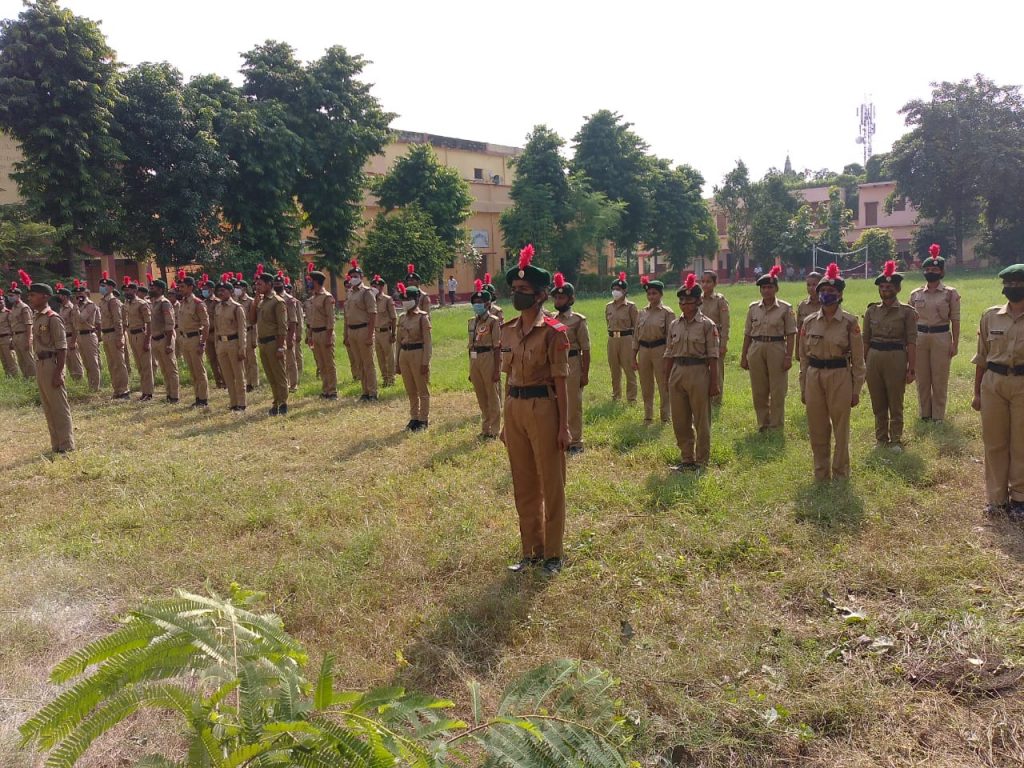 Independent day par pared ground me dhvajarohan ke liye khade NCC cadets