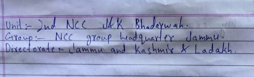 Unit : J&K (I) Coy NCC