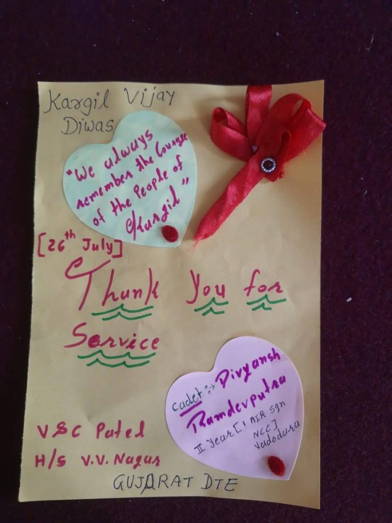 Cadet Divyansh Ramdevputra 1 Guj Air Sqn Baroda Paying tribute to soldiers