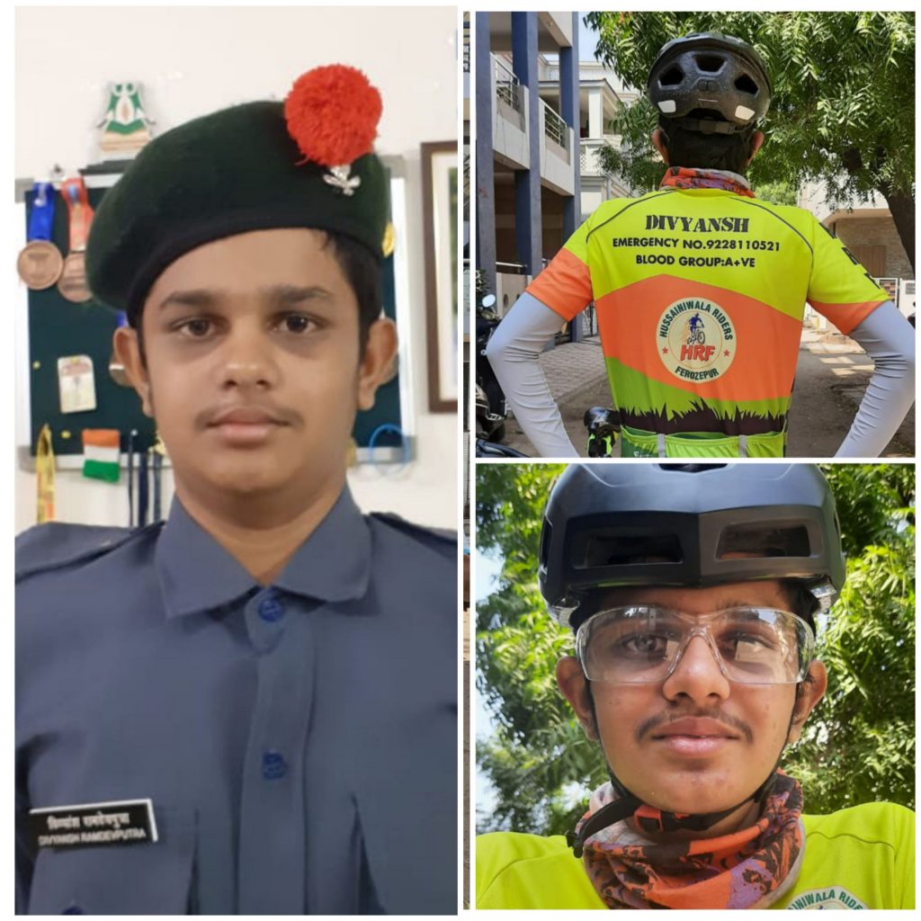 Cadet Divyansh Ramdevputra 1 Guj Air Sqn Baroda Cycling 75 km to celebrate independence day